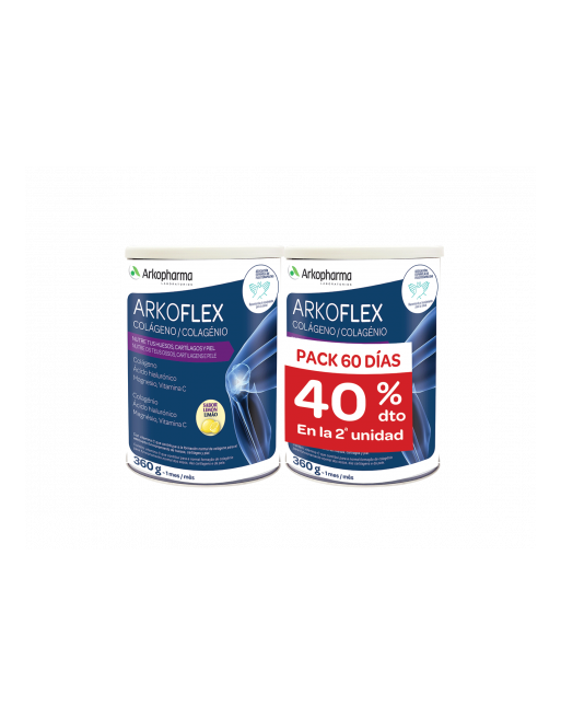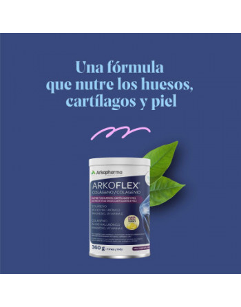 Arkoflex Colágeno es un suplemento nutricional especialmente diseñado para proteger la salud de los huesos, por su contenido en magnesio, y el buen funcionamiento de los cartílagos, gracias a la vitamina C que ayuda a la formación del colágeno.