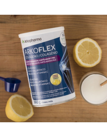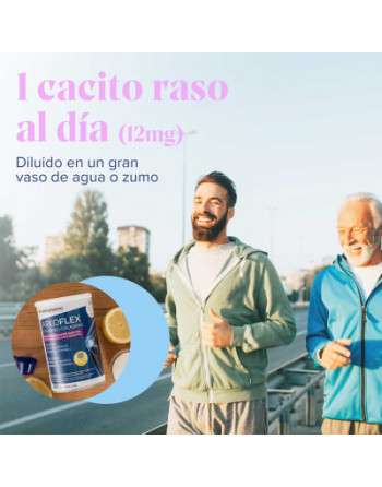 Arkoflex Colágeno es un suplemento nutricional original que se diluye directamente en un vaso de agua grande.
