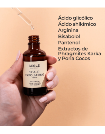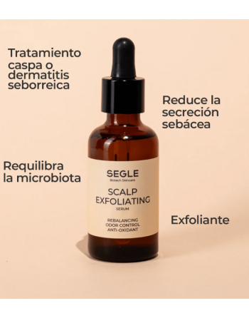 • Sérum exfoliante que elimina la acumulación de producto, sebo y células muertas y prepara el cuero cabelludo para otros tratamientos posteriores.