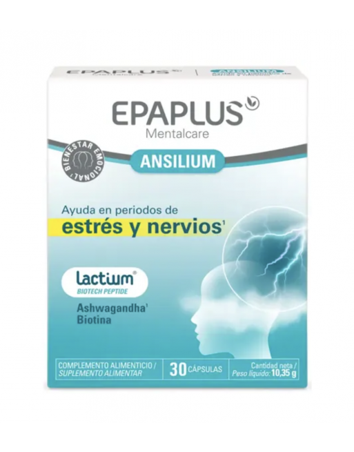 Epaplus Mentalcare Ansilium 30 Cápsulas es un suplemento nutricional formulado a base de lactium, aswaghanda y biotina.