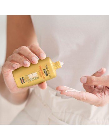 Aplicar generosamente sobre la piel seca como último paso de la rutina de cuidado de la piel, antes del maquillaje. Si la exposición solar es superior a dos horas, recomendamos reaplicar el producto.