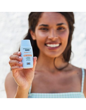 Protector solar facial de textura ultraligera y fase externa acuosa con efecto refrescante.