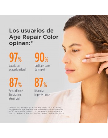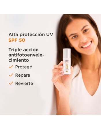 Protección solar facial con color, ultraligero y de uso diario con triple acción antifotoenvejecimiento. Además, aporta una cobertura natural que unifica el tono y disimula imperfecciones, proporcionando un efecto buena cara. No comedogénico. Oil-free. Hipoalergénico.