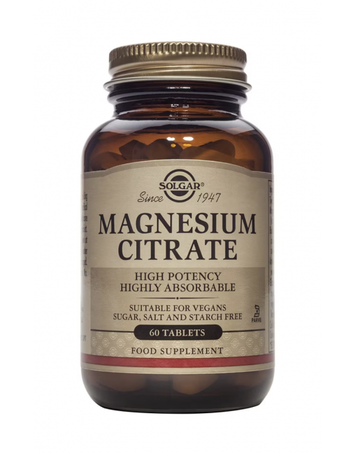 Citrato de Magnesio de Solgar contiene, por comprimido, una alta concentración de magnesio orgánico en forma de citrato, de fácil absorción.