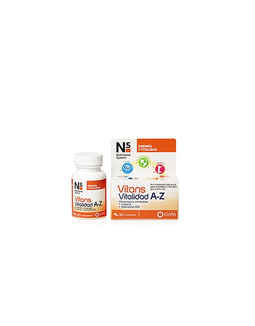 Ns Vitans Vitalidad A-Z está formulado con 13 vitaminas, 11 minerales, luteína y coenzima Q10.