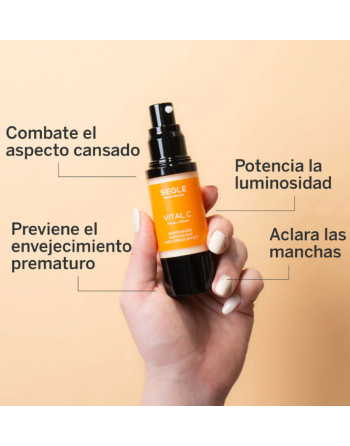 Combina el poder de la Vitamina C con un activo antiestrés, ácido hialurónico y pantenol.