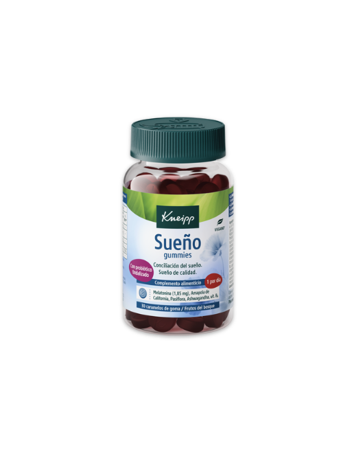 Kneipp® Sueño gummies es un complemento alimenticio con melatonina en formato caramelo de goma que contribuye a la conciliación del sueño y a disfrutar de un sueño de calidad. Sabor frutos del bosque.